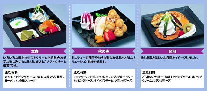 いろいろな素材をソフトクリームと組み合わせてお楽しみいただける、まさに“ソフトクリーム懐石”です。